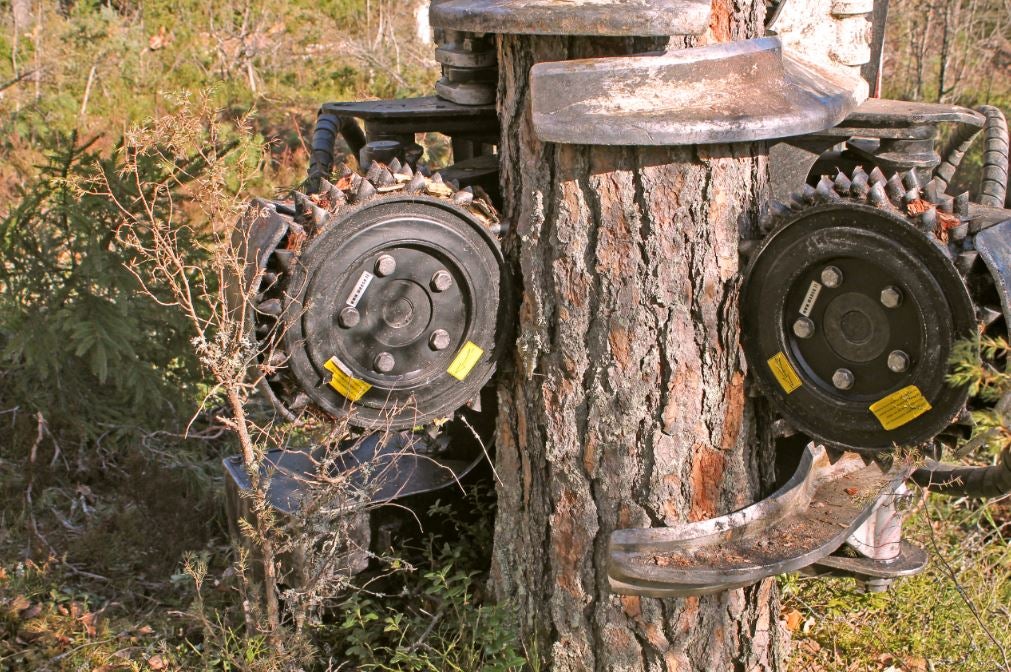 Las ruedas de goma vulcanizada reducen el ruido y la vibración en la cabina del cabezal cosechador al suprimir las vibraciones y aumentar la comodidad del conductor. Los efectos positivos del amortiguador de goma son especialmente evidentes al manipular tipos de madera dura. El amortiguador añade precisión al agarre mejorando la tracción. Las púas asimétricas fabricadas en acero resistente al desgaste proporcionan un agarre máximo al alimentar el tronco.