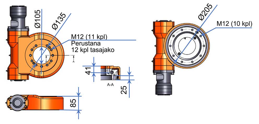 El módulo de giro permite una rotación ilimitada y continua sin deslizamiento mientras soporta una carga elevada. Una rotación bien controlada y estable hace que el trabajo sea más seguro y más eficiente. Las tareas se vuelven más fáciles y rápidas cuando se puede alcanzar alrededor de esquinas y obstáculos y se requiere menos reposicionamiento de la máquina.